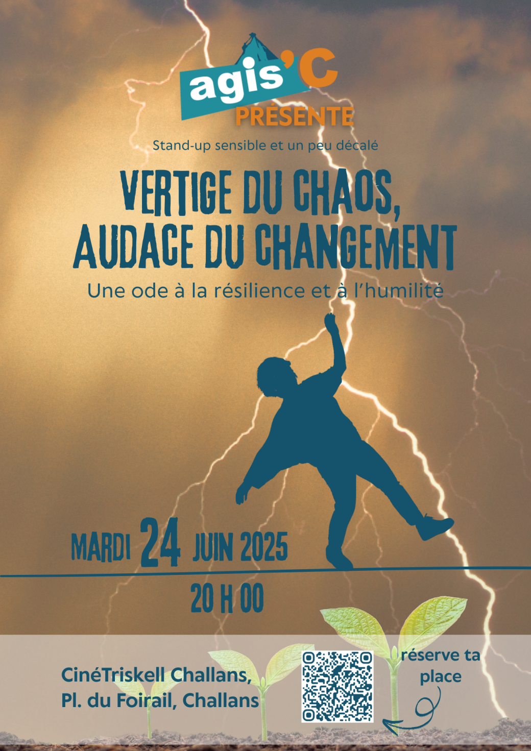 Dans ce spectacle mêlant stand-up sensible et confidences chaotiques, Agis’C plonge dans les turbulences du changement, les cadeaux bien planqués et les petits bouleversements intimes. Entre moments de rire et vérités qui cognent juste, on explore l'art de se réinventer quand tout s'effondre… et, avec style, bien sûr.