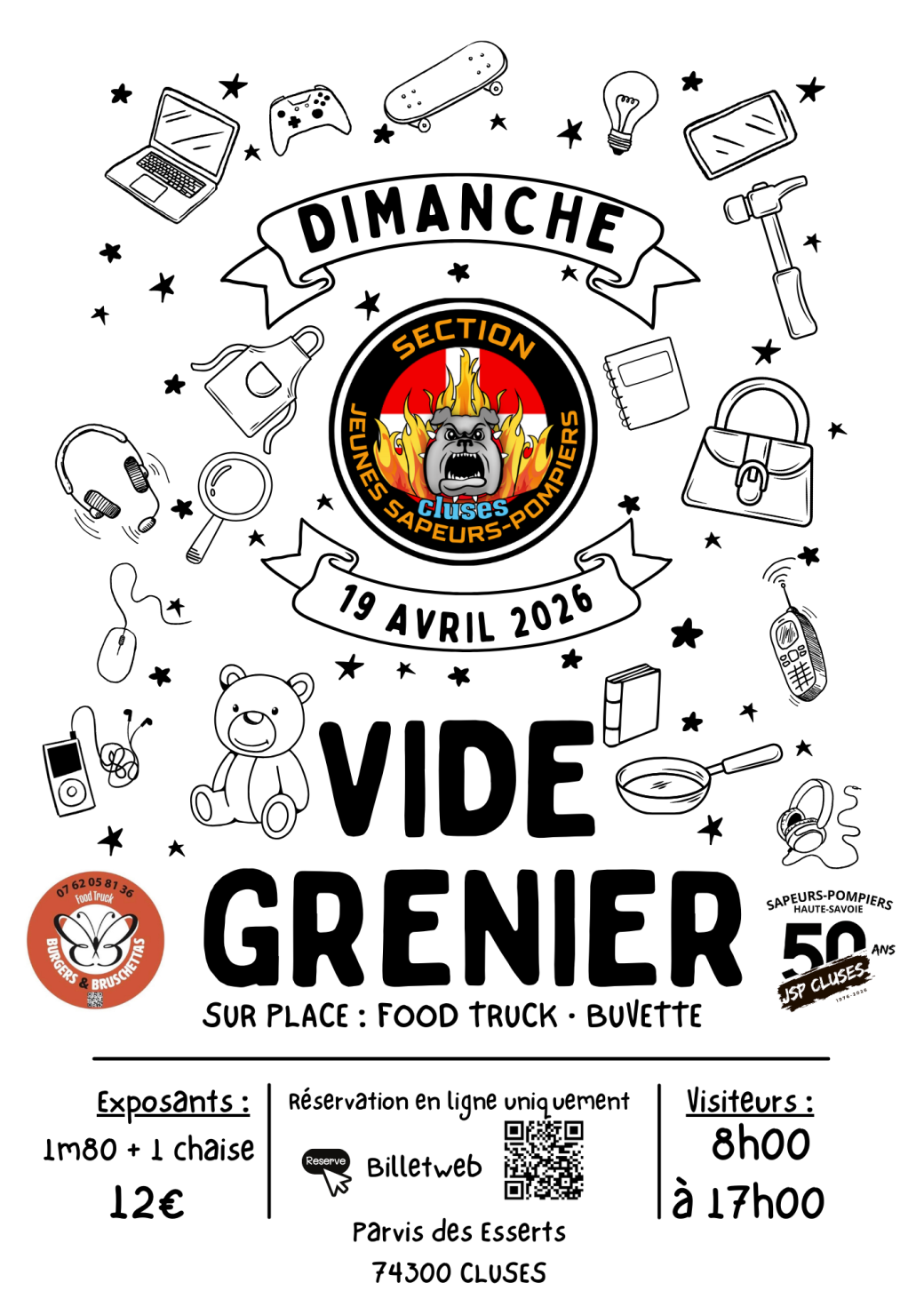 À l’occasion des 50 ans de la section des Jeunes Sapeurs-Pompiers de Cluses, nous organisons notre tout premier vide-grenier
