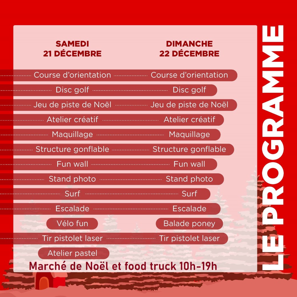 Le 21 et 22 décembre en plus il y aura un marché de Noël et de la restauration de 10h à 19h