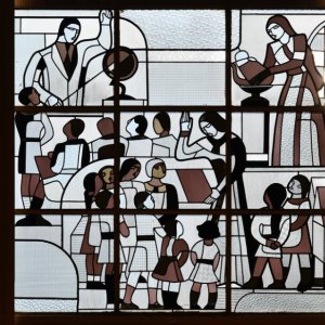 En 1925, l’Exposition internationale des arts décoratifs et industriels modernes qui se tient à Paris consacre le triomphe d’un nouveau style, l’Art Déco, qui se diffuse à travers le monde entier. Inaugurée en 1936, la mairie annexe du 14e arrondissement est un véritable fleuron de ce courant artistique. La salle des fêtes, accessible par un monumental escalier d’honneur, constitue le point d’orgue de cet ensemble raffiné. Son vaste volume modulable est ponctué de décors peints rendant hommage à la vie du 14e arrondissement et aux activités faisant son identité : sa vocation sanitaire et sociale, son passé ouvrier ou encore sa concentration en artistes et savants. L’ossature en béton armé de l’édifice, revêtu de briques rouges, permet d’y distribuer un programme original pour l’époque, offrant aux habitants du quartier des services inédits : dispensaire, tribunal d’instance, services sociaux et même une bibliothèque municipale.