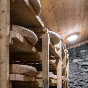 La visite s’achève dans notre cave à fromages, où vous découvrirez les étapes de fabrication et d’affinage de nos fromages artisanaux.
