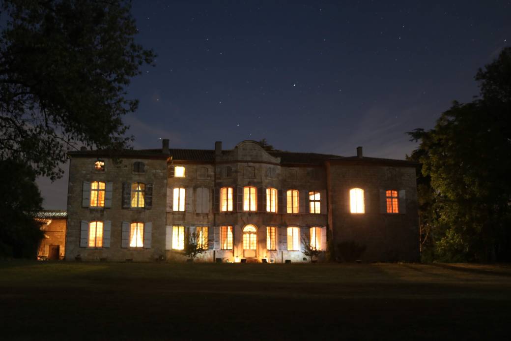 Si la météo le permet, la soirée se poursuivra par une déambulation dans la cour et le parc, pour admirer les lieux de nuit, illuminés sobrement, vous verrez le spectaculaire vitrail côté cour, tandis que votre hôte vous racontera l’histoire des lieux.