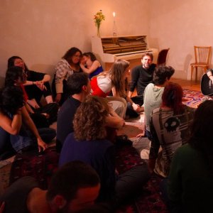 Un lieu chaleureux qui nous permet de faciliter l'atelier puis de rester ensemble pour un hang out musical, de partager des pizzas et du vin naturel.