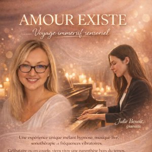► Durant ce voyage immersif, vous serez guidé(e) par Aneta Olszewska, hypnothérapeute, accompagnée au piano par Julie Benoit, dans une atmosphère chaleureuse, enveloppante et profondément sensorielle.