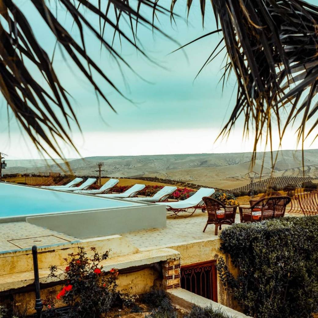 Un Voyage & Retraite au Maroc du 21 au 28 mars 2025, dans un lieu exceptionnel prés de Fès, sur une colline, entouré de collines et vergers d'oliviers, les montagnes au loin ☀️