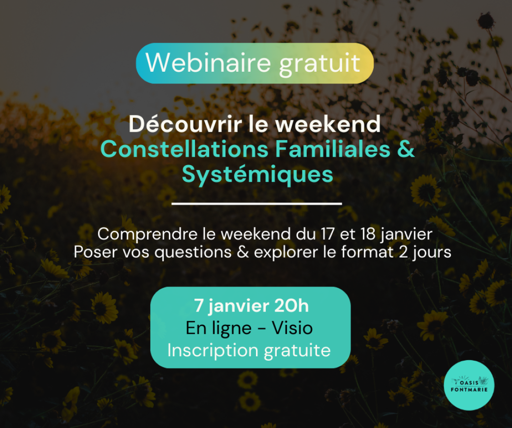 Vous êtes intéressé.e par le Weekend Constellations Familiales et Systémiques du 17 et 18 janvier qui aura lieu à l'Oasis Fontmarie.