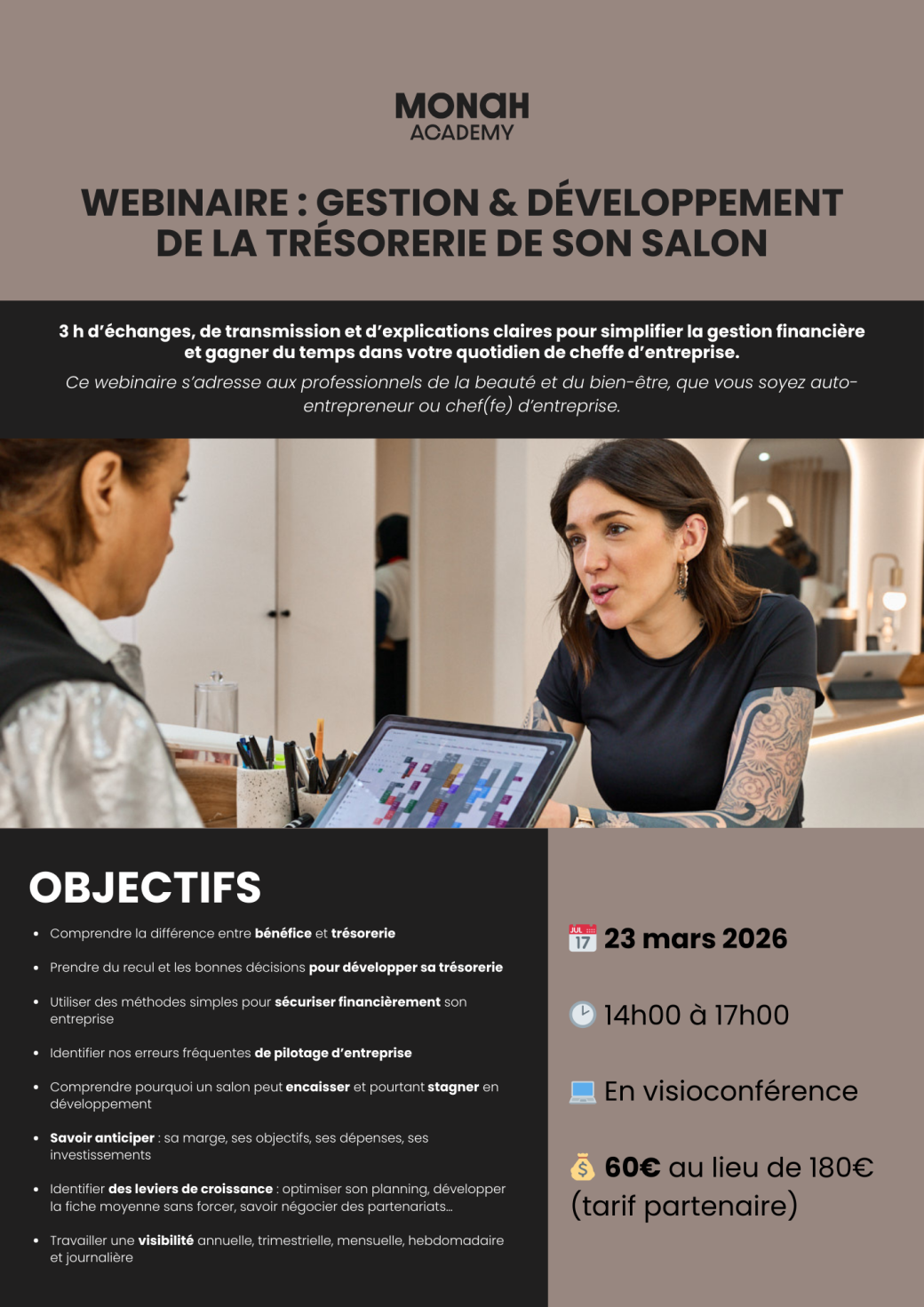 2026-03-23 14:00:002026-03-23 17:00:00Europe/ParisWEBINAIRE : GESTION & DÉVELOPPEMENT DE LA TRÉSORERIE DE SON SALONReservations on : https://www.billetweb.fr/webinaire-gestion-d-veloppement-de-la-tr-sorerie-de-son-salon