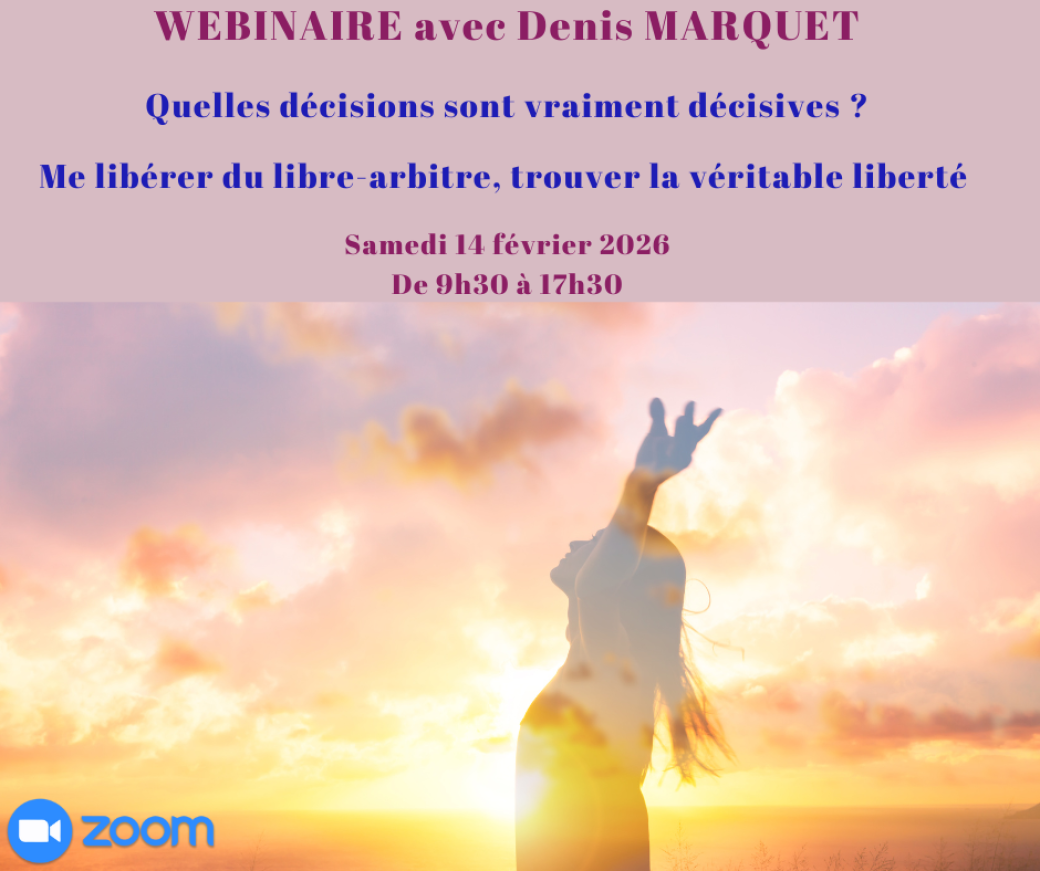 2026-02-14 09:30:002026-02-14 09:30:00Europe/ParisWEBINAIRE "Quelles décisions sont vraiment décisives ? Me libérer du libre-arbitreReservations on : https://www.billetweb.fr/webinaire-quelles-decisions-sont-vraiment-decisives-me-liberer-du-libre-arbitre