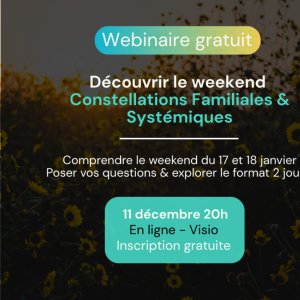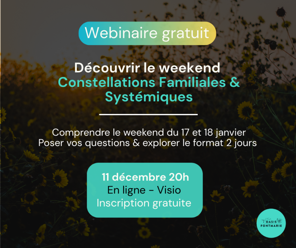 Vous êtes intéressé.e par le Weekend Constellations Familiales et Systémiques du 17 et 18 janvier qui aura lieu à l'Oasis Fontmarie.