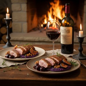 The wines are paired with duck, and we talk about how flavors work together. There is enough food to take your time tasting and talking while standing around the tables.