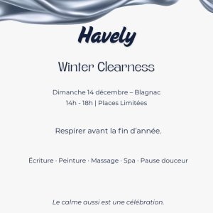 2025-12-14 14:00:002025-12-14 18:00:00Europe/ParisWinter ClearnessReservations on : https://www.billetweb.fr/winter-whispers