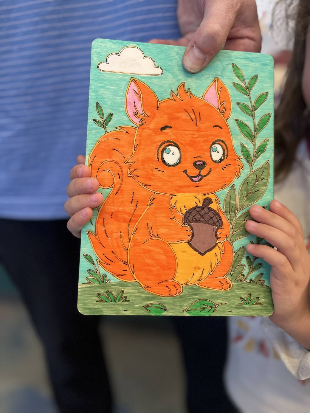 1/ Rendre l'enfant véritablement acteur en lui faisant réaliser un maximum d'étapes, comme le ponçage au papier, le collage, etc. en plus de la customisation. Ces étapes sont bien entendu adaptées et accompagnées suivant l'âge, les compétences et envies de l'enfant. Nous proposons de créer de véritables objets de décorations ou des jeux, et ainsi de renforcer la fierté d'avoir créé soi-même.