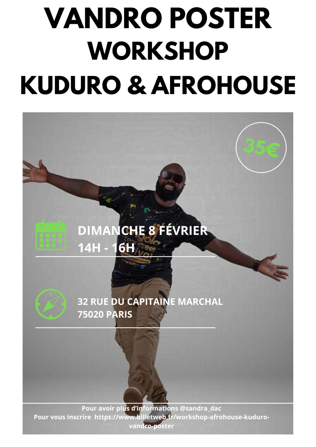 2026-02-08 14:00:002026-02-08 16:00:00Europe/ParisWORKSHOP AFROHOUSE & KUDURO Vandro PosterReservations on : https://www.billetweb.fr/workshop-afrohouse-kuduro-vandro-poster