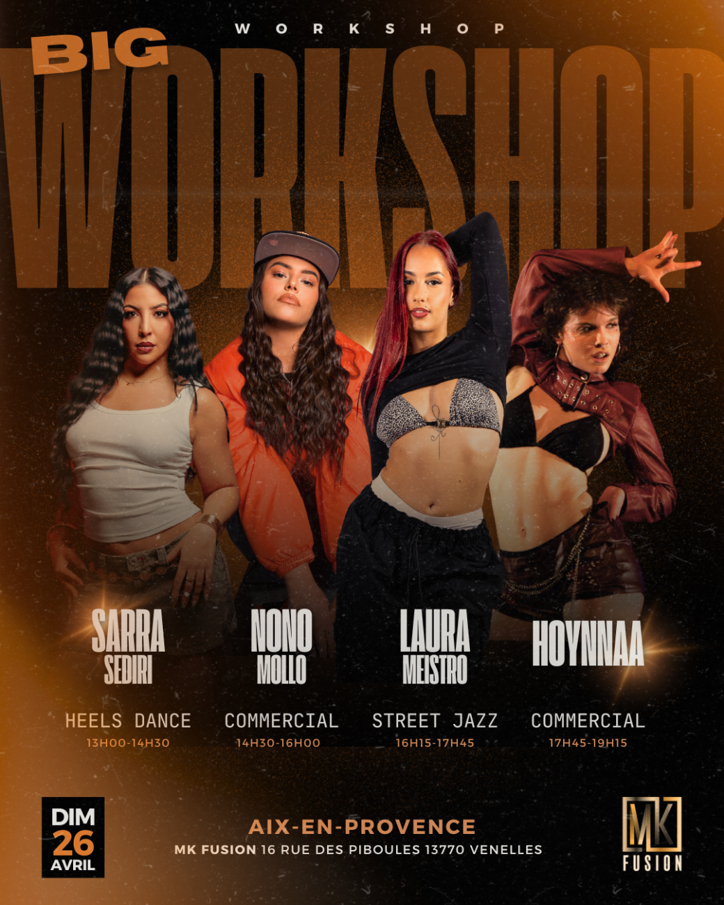 Elle eprésente la nouvelle génération et partage son art à travers de nombreux workshops en France. Après avoir performé aux côtés d’artistes tels que Slimane, Amir et Gims, et au NMA 2025.