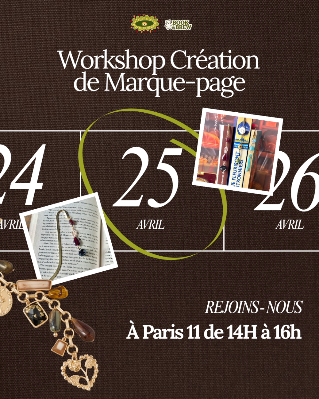 On se retrouve pour un workshop de création de marque-pages, une collaboration entre Bijoux Anette et Book & Brew