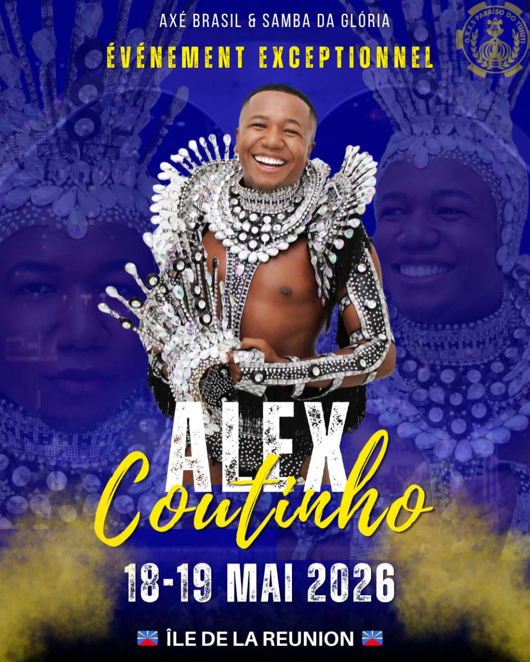 Nous avons l’immense honneur d’accueillir le grand Alex Coutinho, directement venu du Brésil, pour deux stages exclusifs qui vont faire vibrer l’île au rythme du samba no pé.✨
