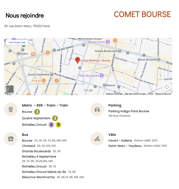 Comet Meetings - Bourse, Rue Saint-Marc, Paris, FranceESRA France