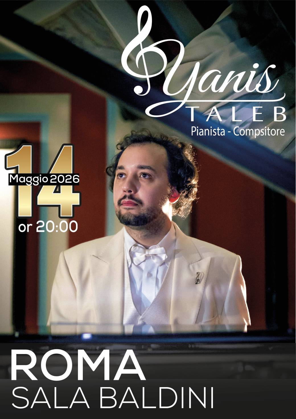 Yanis TALEB è un pianista, compositore e concertista internazionale di grande rilievo, la cui carriera si inscrive in un profondo dialogo euro-arabo. Si è affermato come una voce potente nella scena musicale contemporanea, sviluppando una scrittura singolare, nutrita da molteplici influenze, al crocevia tra Oriente e Occidente, dando vita a un linguaggio musicale originale e raffinato.