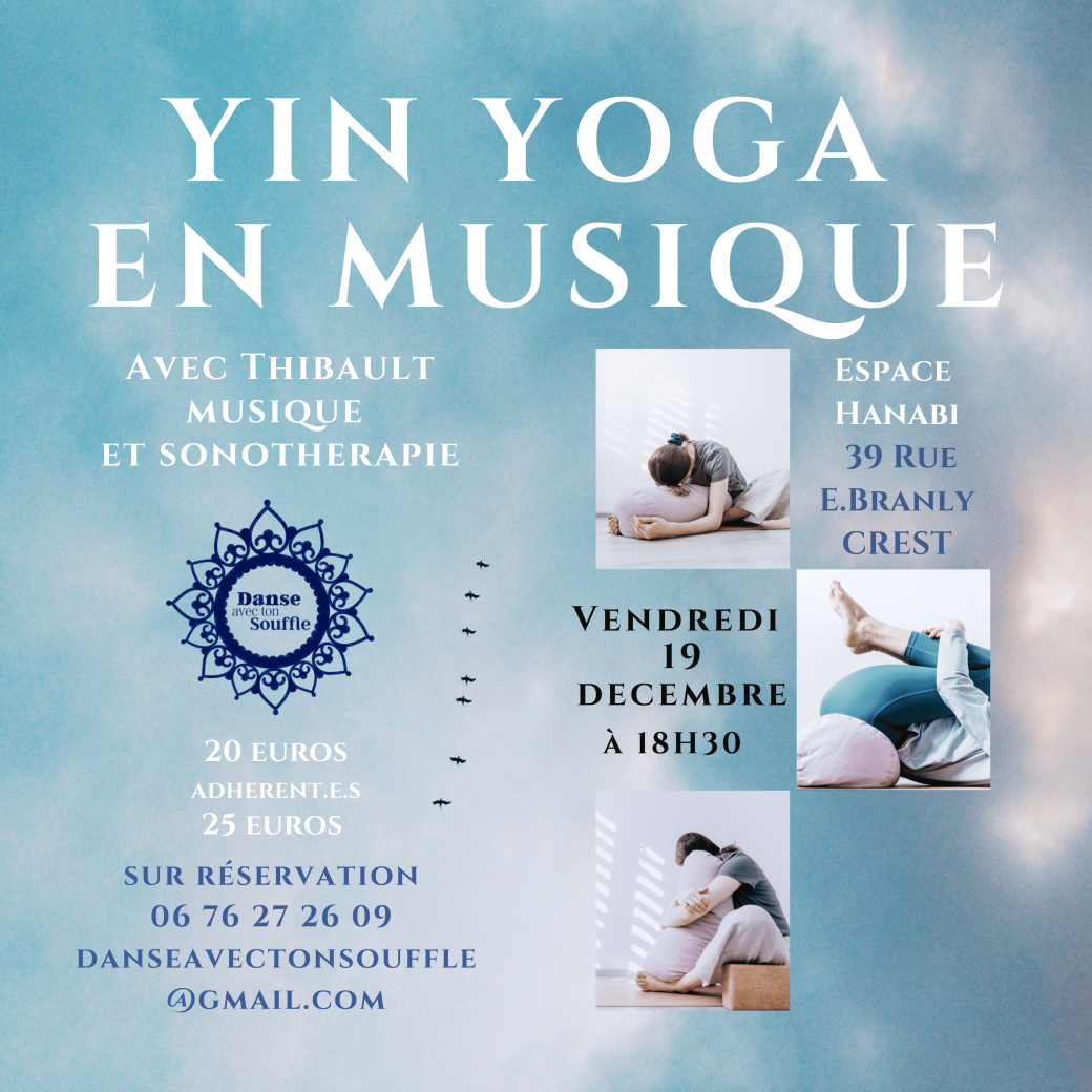 Yin Yoga guidé par Sabrina de Danse avec ton souffle et accompagné par Thibault, musicien et qui pratique la sonothérapie.