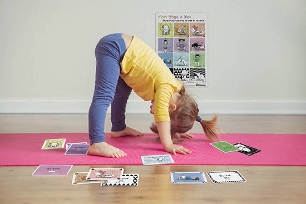 Avec le jeu de carte "mon yoga à moi", explorez le mouvement en jouant avec votre enfant grâce à des postures simples (ex: imite des animaux), des comptines, du matériel sensoriel (balles picots, foulards, plumes..) des jeux de respiration et de massage.