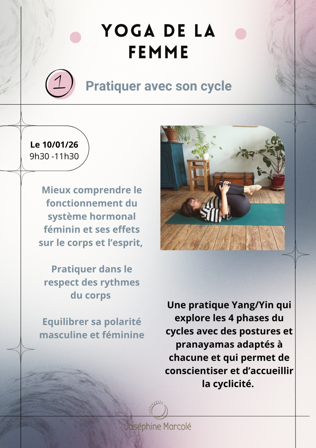2026-01-10 09:30:002026-01-10 11:30:00Europe/ParisYoga de la femme, atelier 1 : pratiquer avec son cycleReservations on : https://www.billetweb.fr/yoga-de-la-femme-atelier-1-pratiquer-avec-son-cycle