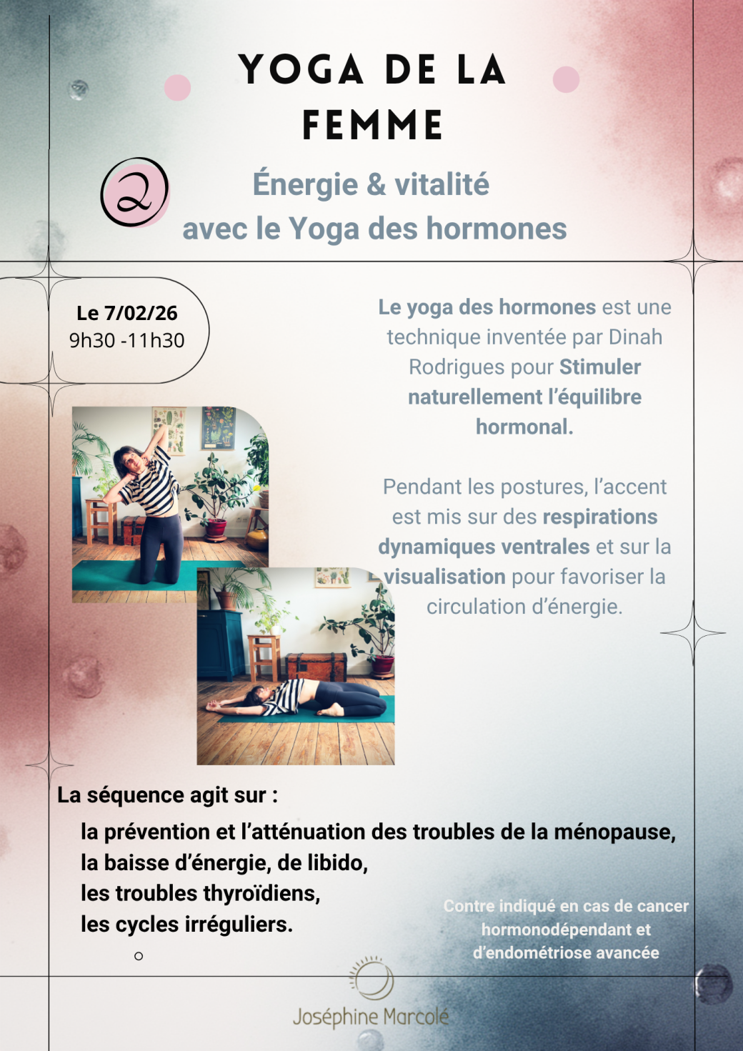 2026-02-07 09:30:002026-02-07 11:30:00Europe/ParisYoga de la femme, atelier 2 : Energie et vitalité avec le yoga des hormonesReservations on : https://www.billetweb.fr/yoga-de-la-femme-atelier-2-2nergie-et-vitalite-avec-le-yoga-des-hormones