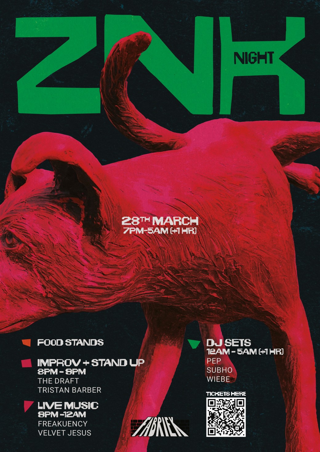 Live music follows with two acts: Velvet Jesus, a Leuven-based band blending indie rock with Arabic influences reminiscent of Tamino and Calexico; and Freakuency, mixing synth-pop and trip-hop into dreamy territory.