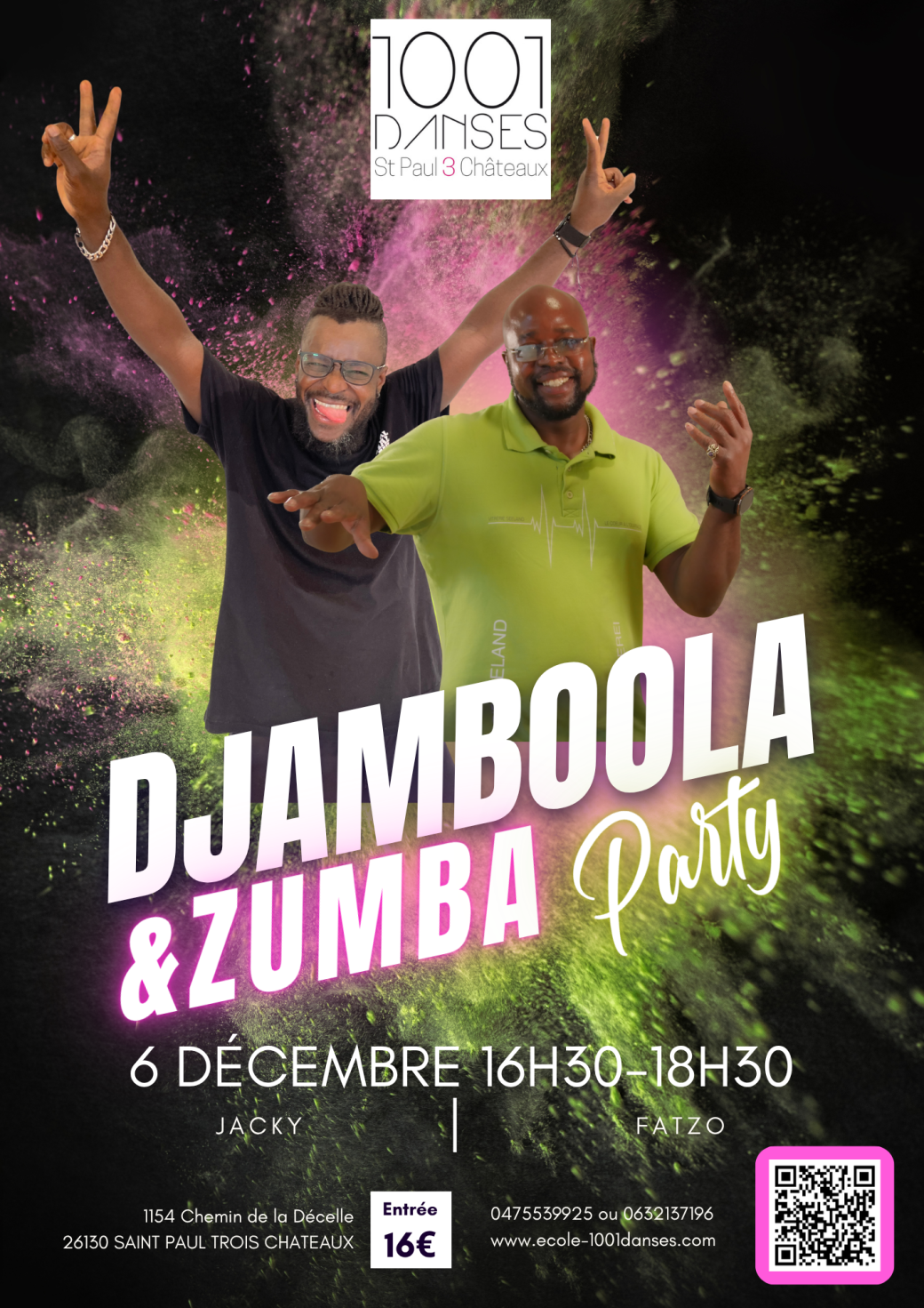 Préparez-vous à bouger, transpirer et vous amuser lors de notre Djamboola & Zumba Party du samedi 6 décembre de 16h à 18h !