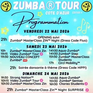 Zumba® Tour Côte d’Azur organisé par ZIN™ Julie JUAN vous invite à partager un week-end de 3 jours et plus; festif et sportif :